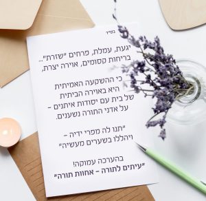 עשרות זרי פרחים נשלחו לנשות הלומדים שהצטרפו לאחרונה עם כרטיס ברכה: זכות לימוד התורה של בעלך – זכותך!