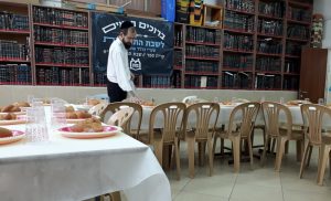 בליל שבת הגדול התכנסו אברכי הכולל של סניף קריית ספר לסעודת ליל שבת משותפת. עוד קודם לכן, בליל שישי, קיבל כל אברך לביתו שי מיוחד